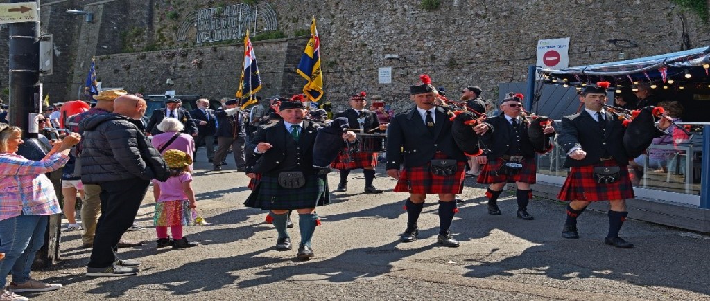 Two FREE Opportunities to hear our magnificent Scottish Pipes and Drums who lead our D-Day Parade from the `Man & Boy` statue to Breakwater Beach, on Thursday 6th June from 1030am. They will be performing there that day 1230am to 1pm in a tribute to the fallen.